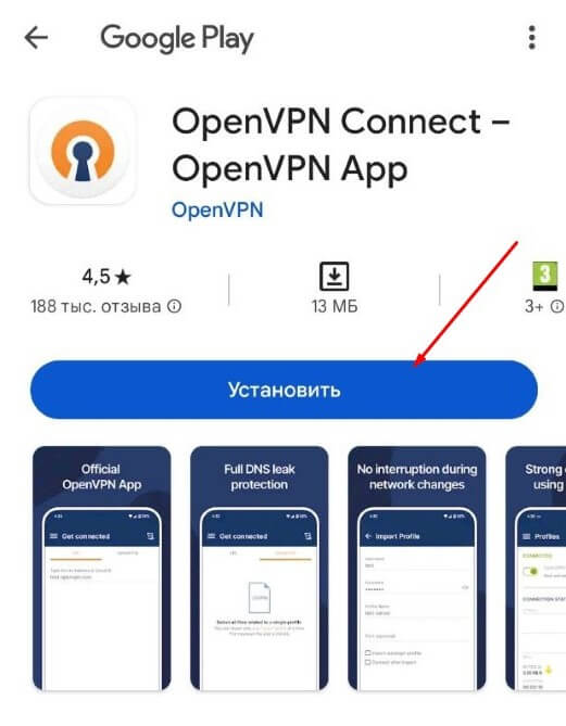На странице с приложением в каталоге Google Play нажмите кнопку «Установить»: